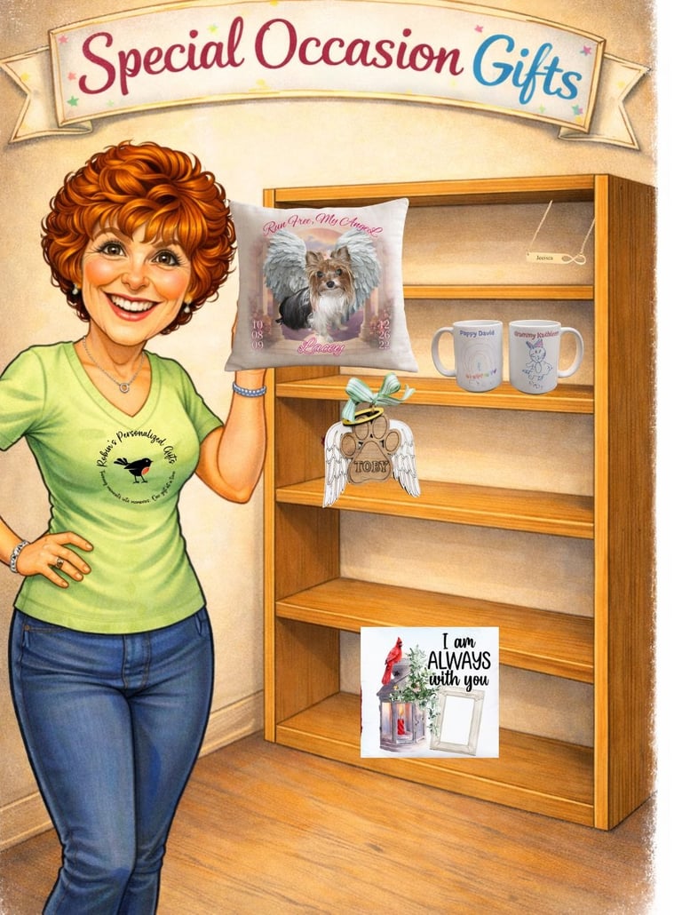 In Memory of Gifts -Keep their memory alive with thoughtful, personalized gifts made from the heart. Choose from clothing, pillows, ornaments, flags, and more—each created to bring comfort and remembrance. Click the button to view the full selection